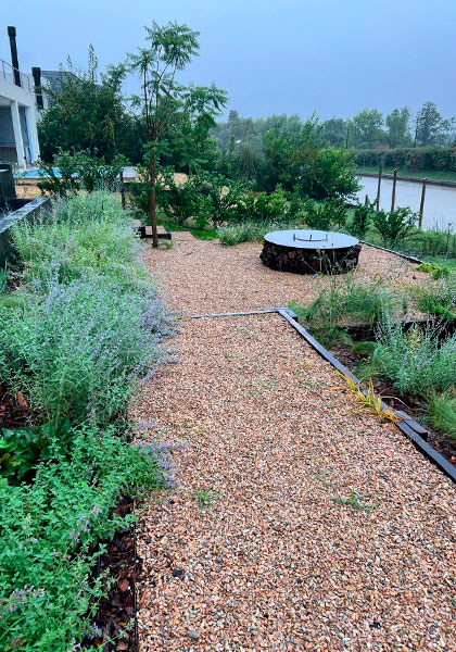 En este jardín aprovechamos al máximo las oportunidades de diseño que se generan por las diferencias de niveles en el terreno